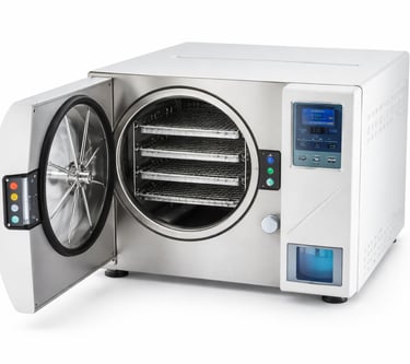 Appareil de stérilisation utilisant la vapeur sous pression pour éliminer bactéries, virus et spores.